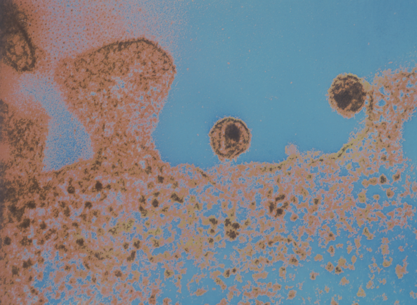 Citation of Françoise Barré-Sinoussi, 2008 Nobel Prize in physiology or medicine for the co-discovery of the HIV virus - Photo: HIV-1 virus (causative agent of AIDS) on the surface of a lymphocyte. Virus isolated and identified at the Institut Pasteur in 1983. Colored image. © Institut Pasteur / Photographer - Author: Charles Dauguet.